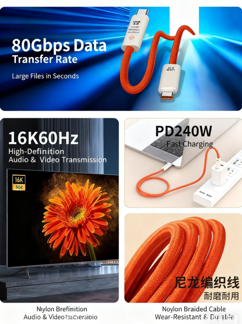 TUTI USB 5.0 Type-C Interface PD 240W Data Cable